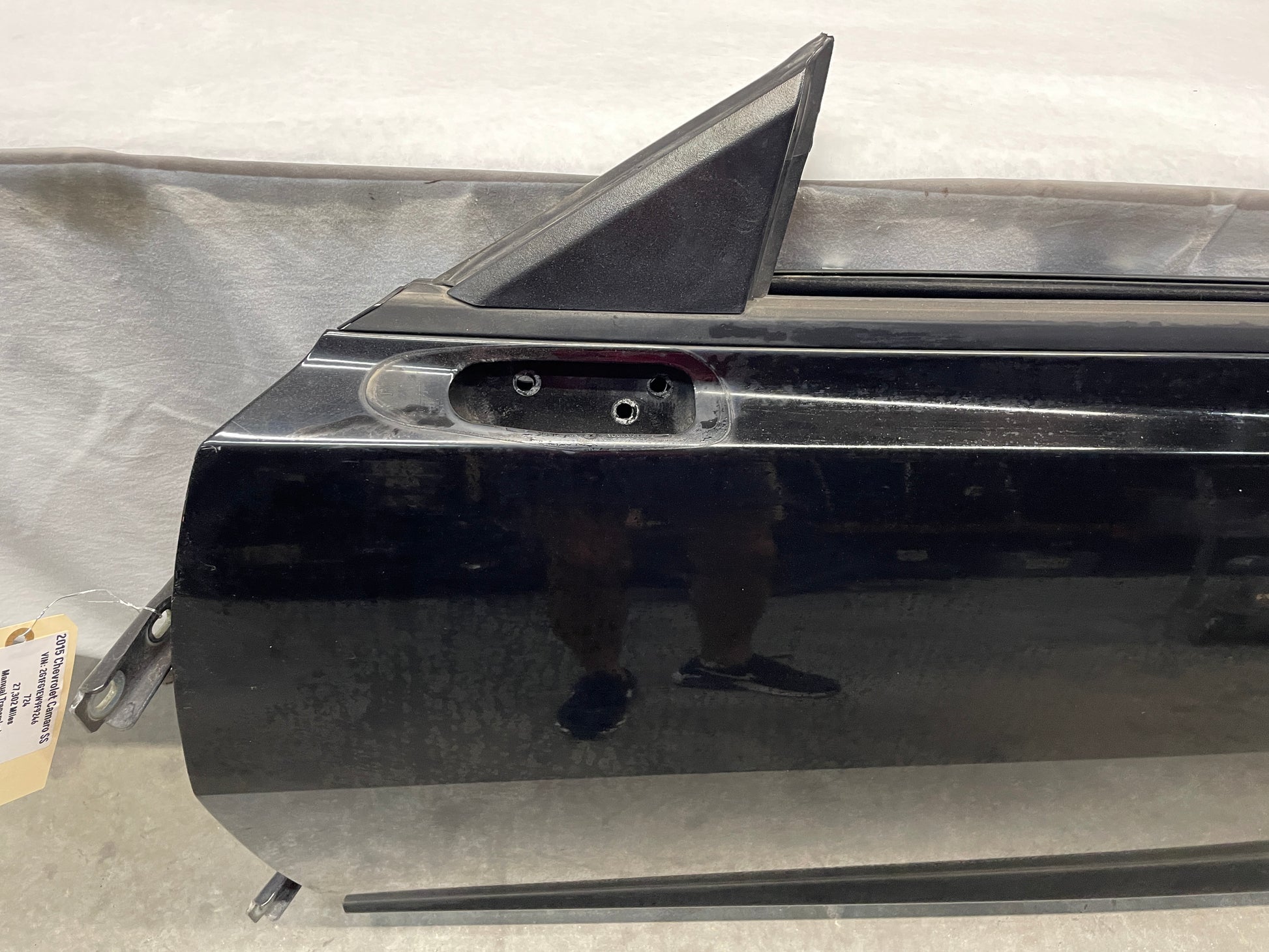 Removed from a 2015 Chevy Camaro SS. Door is bare. Has a few imperfections. Please look over all 16 photos.