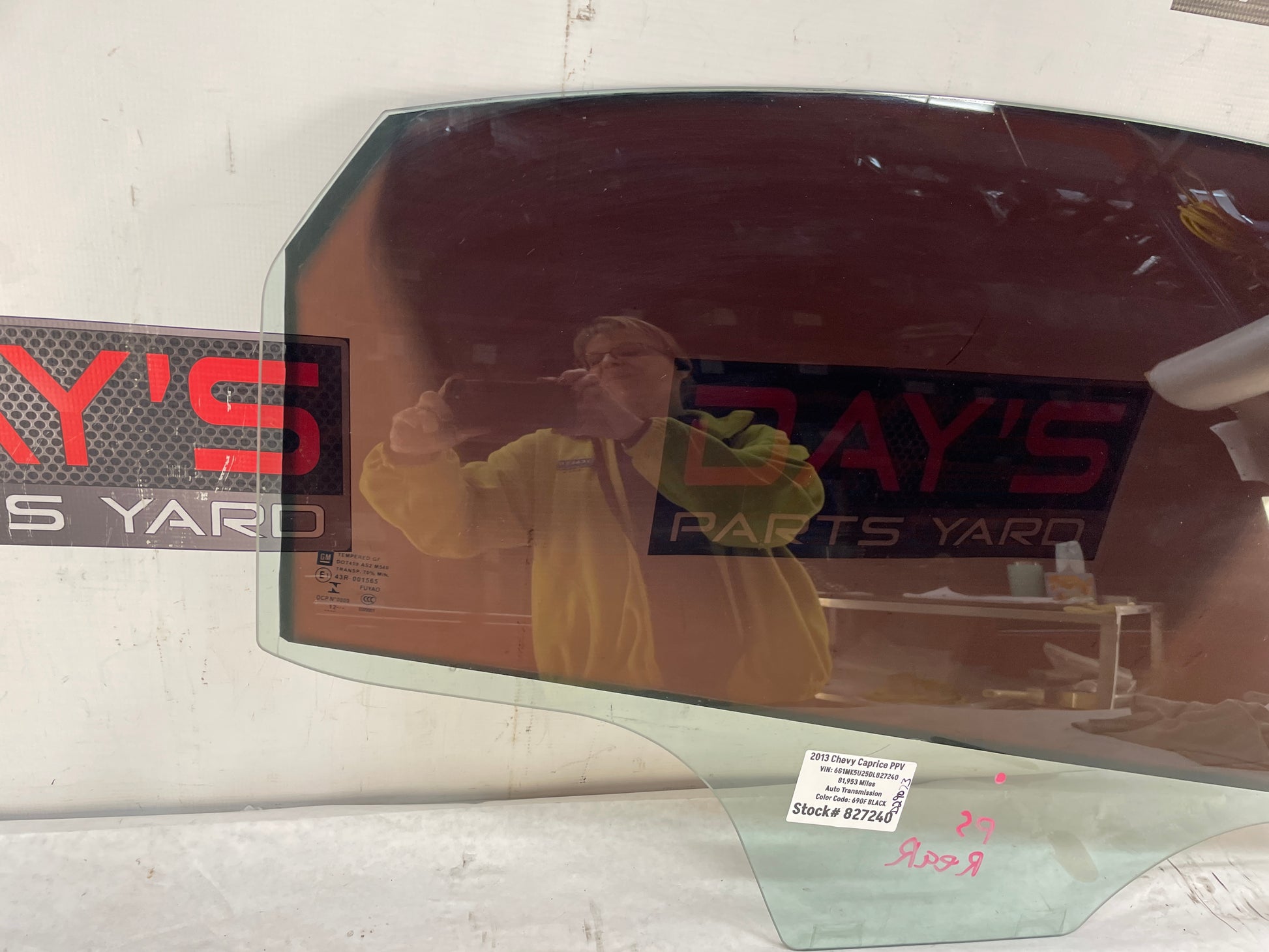 2013 Chevy Caprice PPV RH Passenger Rear Door Window Glass OEM